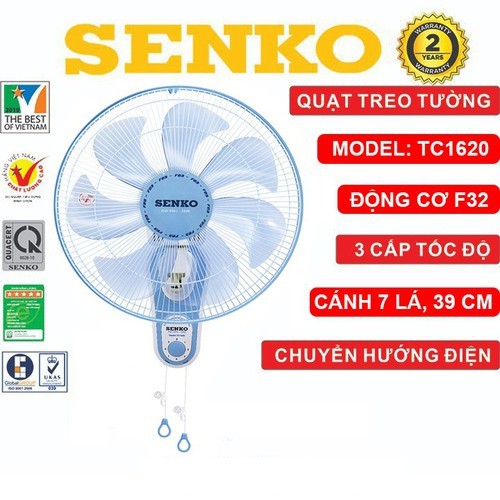 Giới thiệu [Mã ELHA22 giảm 5% đơn 300K] Quạt Senko Treo Tường TC1620 65W - Quạt Senko 2 Dây 7 Cánh Chính Hãng Senko - BH 24 tháng