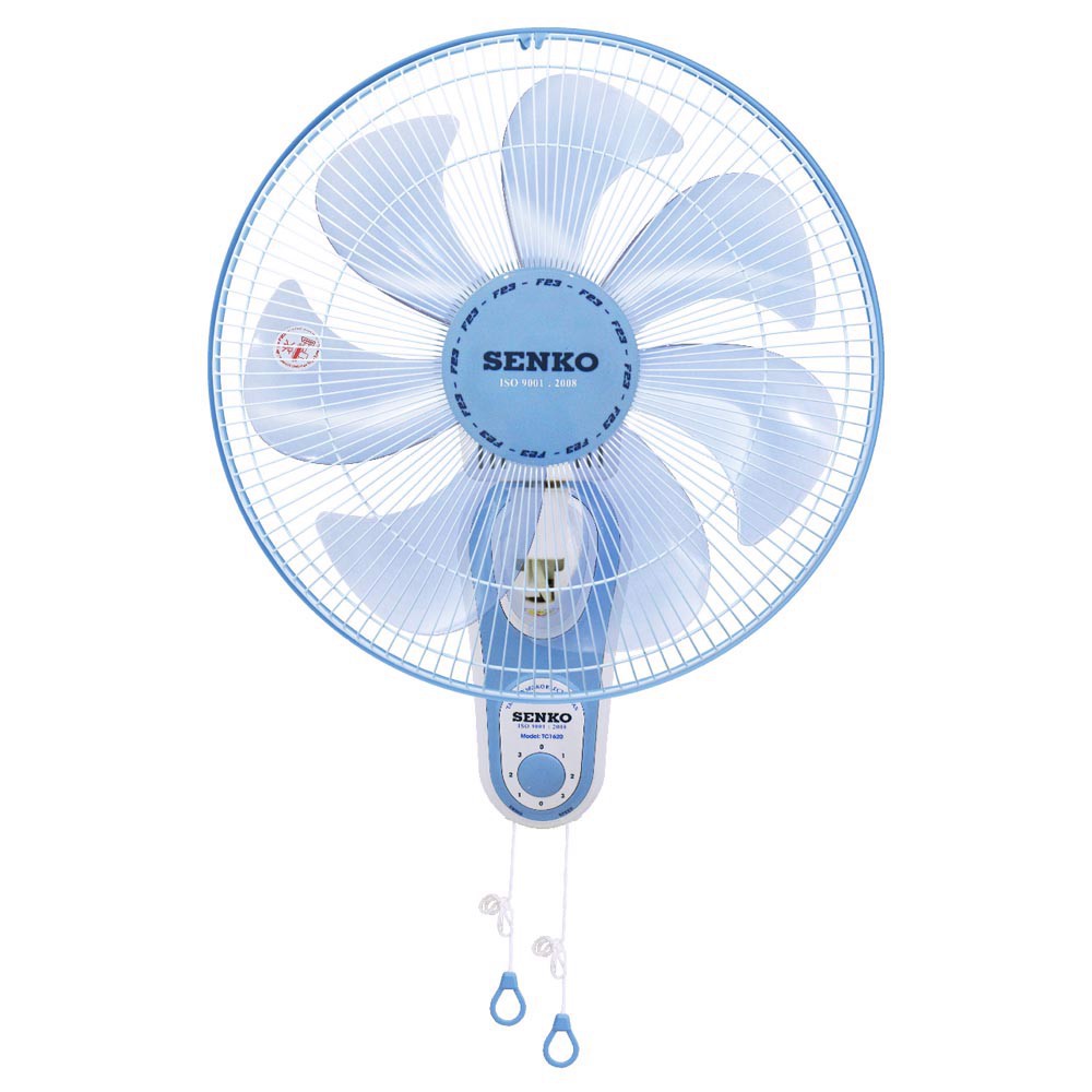 Quạt treo tường 2 dây Senko TC1620 có sải cánh rộng 40cm và đầu quạt xoạy được 150 độ.