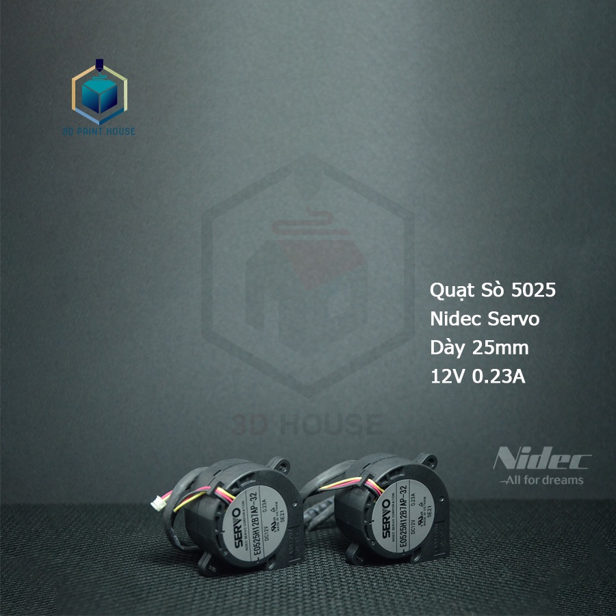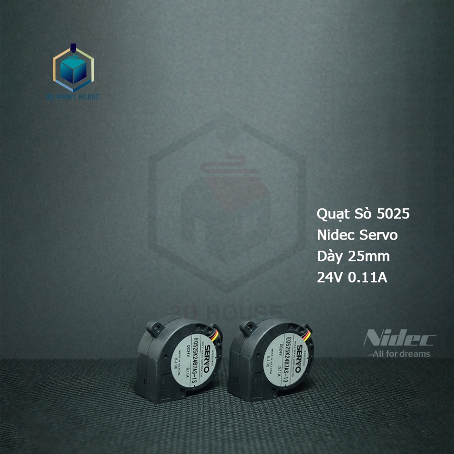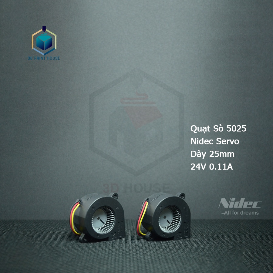 Quạt Sò Tản Nhiệt 5025 12V, 24V Hãng Nidec Nhật Xịn Cho Máy In 3D- Quạt sò là loại quạt đưa hướng gió ra một hướng nhất định. Thường dùng để thổi vật in để vật thể in được đẹp nhất, là một thứ không thể thiếu trong bộ phận in của máy in 3D.