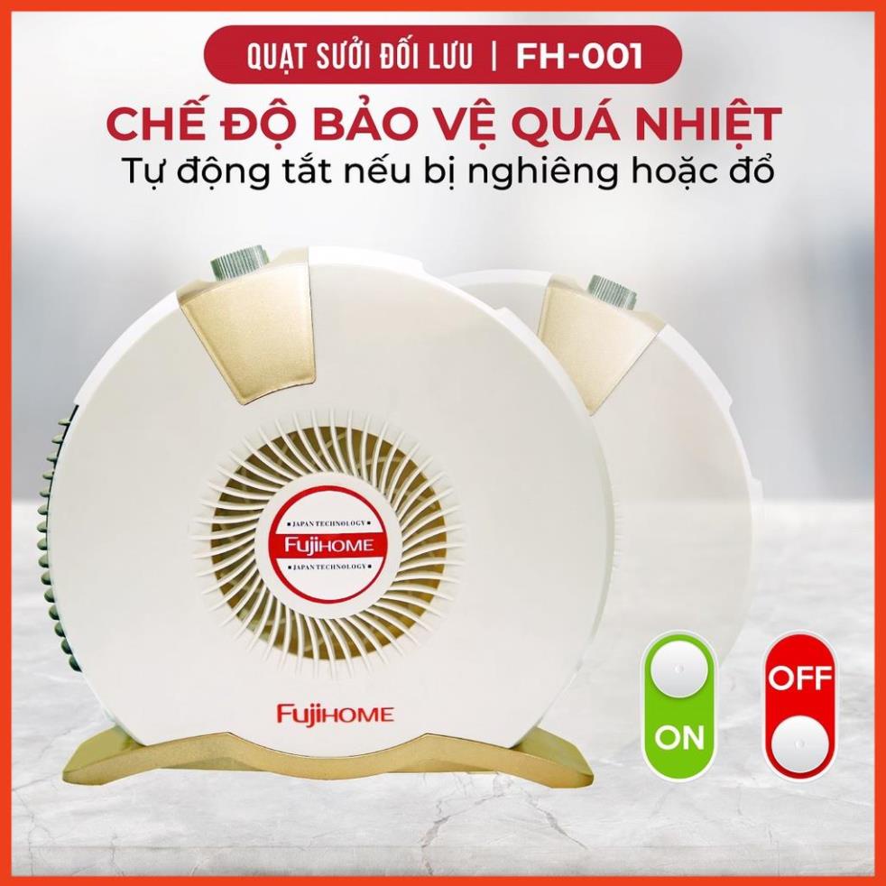 FUJIHOME FH-001 hoạt động theo cơ chế của dòng khí đối lưu, với 2 mức công suất 800 và 1600W. Theo đó, dòng khí lạnh sẽ di chuyển qua khe hút gió phía dưới, sau đó di chuyển lên trên và được làm nóng bởi mai xo siêu nhỏ. Dòng khí sau khi được làm nóng sẽ di chuyển tiếp lên trên và lan tỏa đều khắp không gian phòng, tạo cảm giác ấm áp.