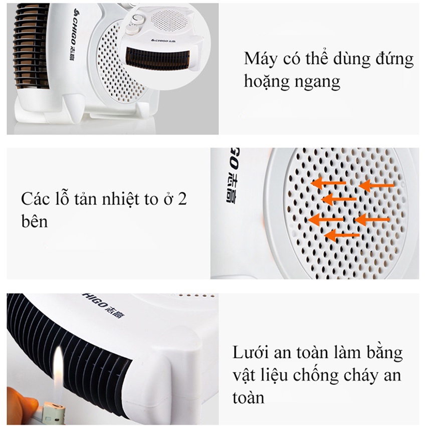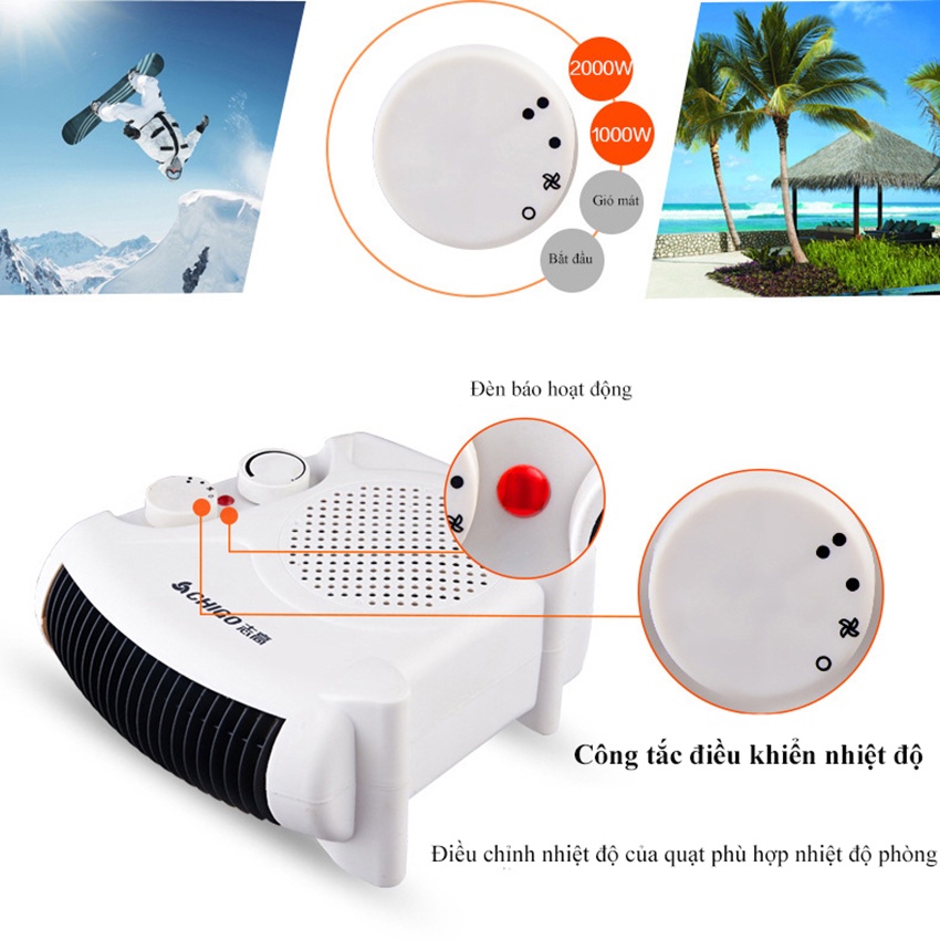 Quạt Sưởi Ấm Mini ChiGo Công Suất Max 2000W Với 3 Cấp Độ Điều Chỉnh Tự Tắt Khi Quá Nhiệt Dùng Cho Phòng Diện Tích 20m