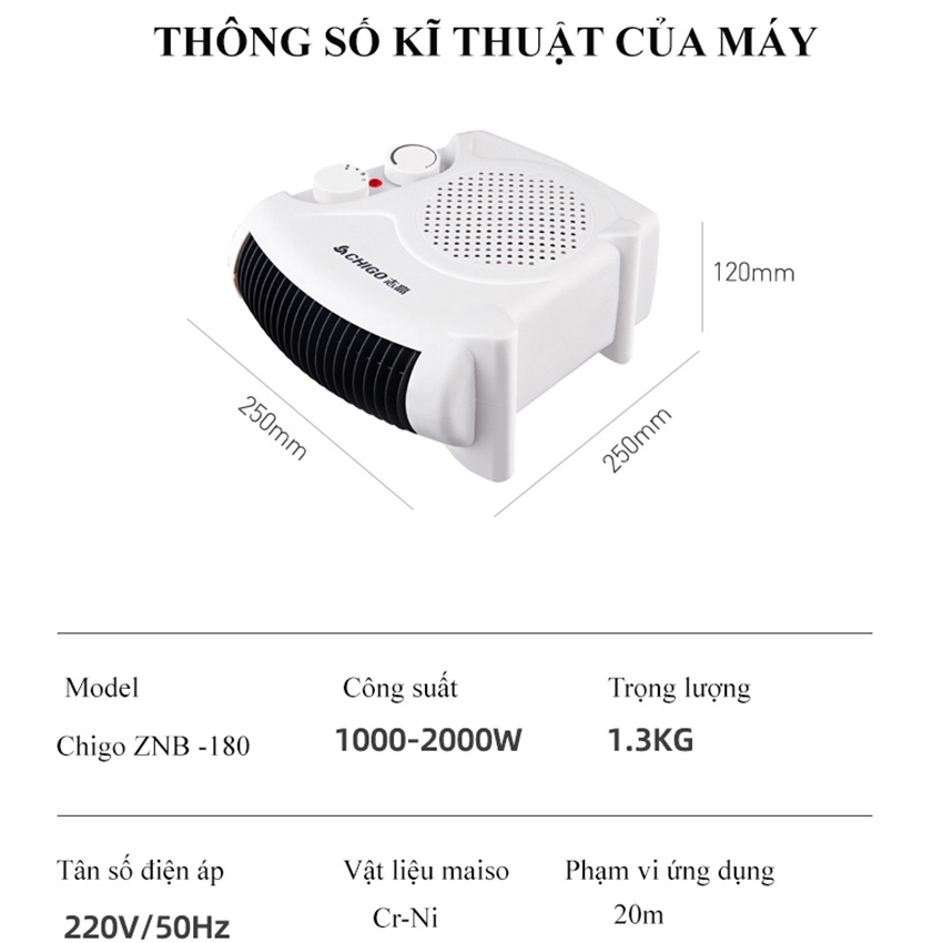 Giới thiệu Quạt Sưởi Ấm Mini ChiGo Công Suất Max 2000W Với 3 Cấp Độ Điều Chỉnh Tự Tắt Khi Quá Nhiệt Dùng Cho Phòng Diện Tích 20m