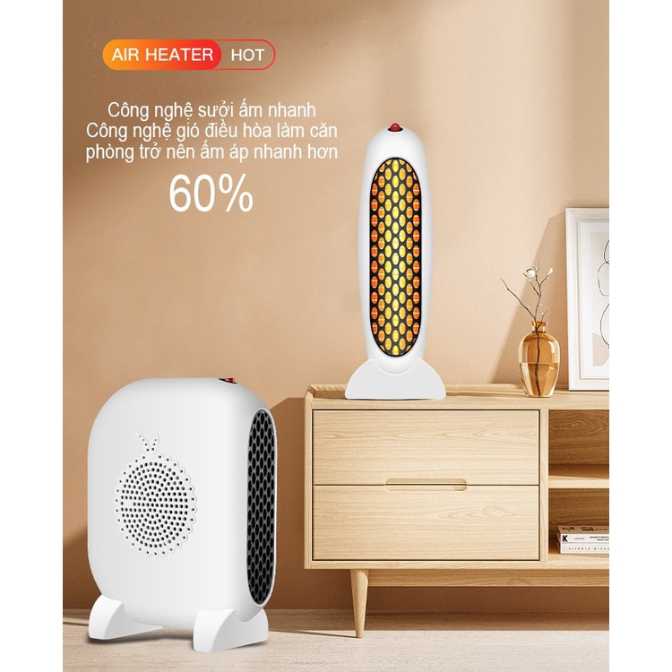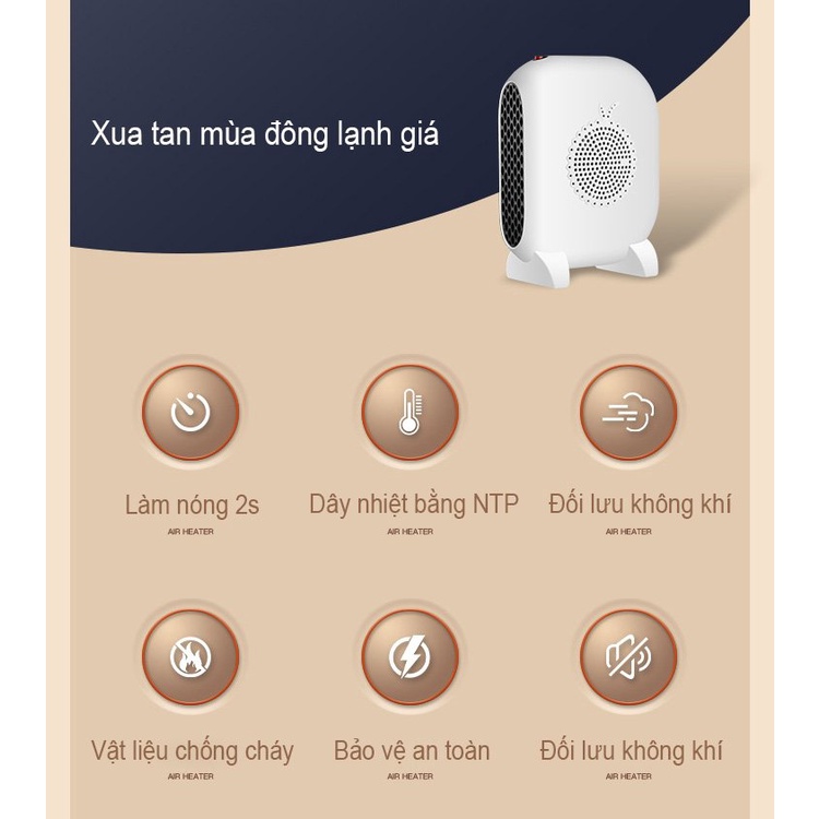 Quạt sưởi ấm mini, tiếng ồn cực thấp,làm ấm siêu nhanh lan tỏa rộng, Chất liệu ABS chống cháy