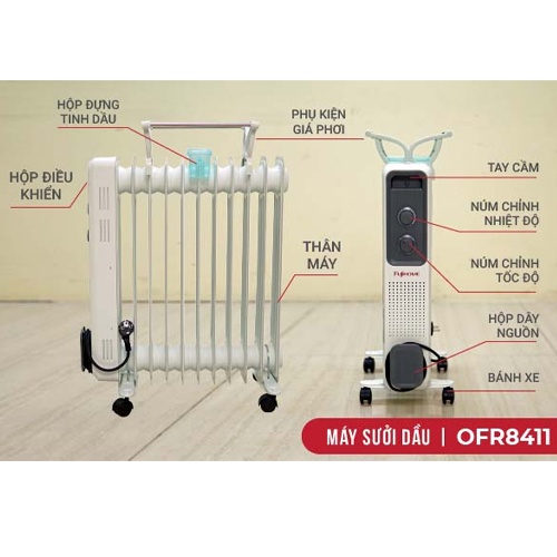 Quạt sưởi dầu FUJIHOME OH8411• Đặc điểm: