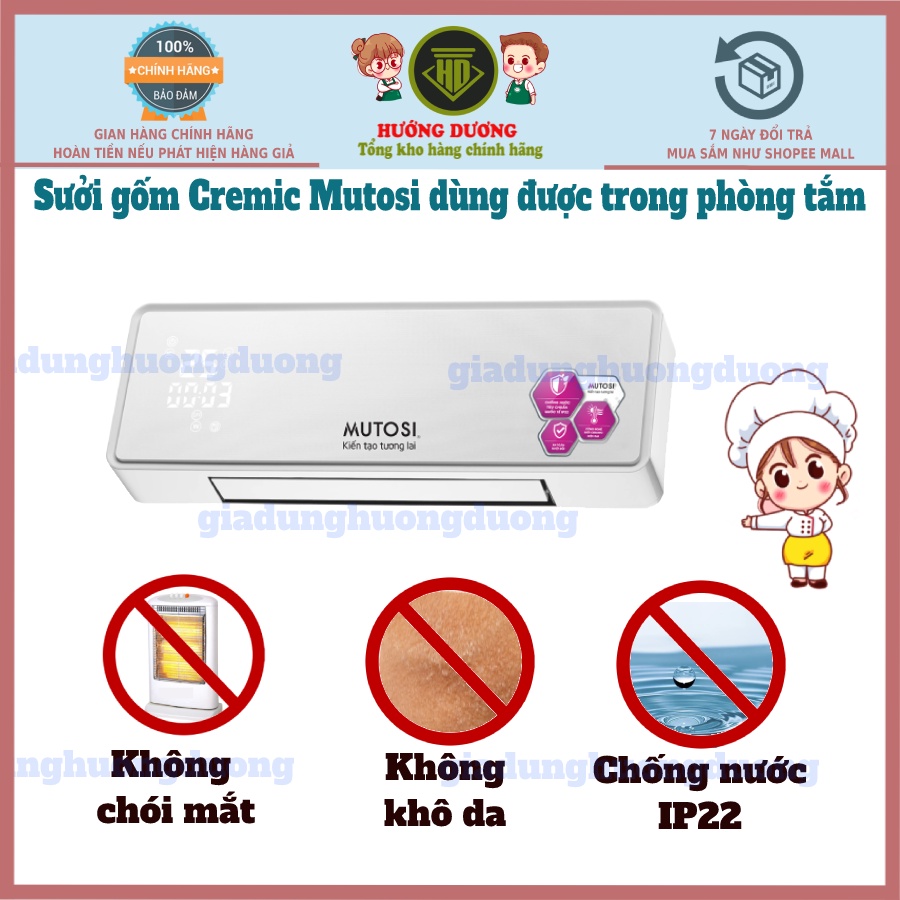 Thiết Bị Điện Gia Dụng > Thiết bị điện gia dụng lớn > Máy sưởi || Quạt sưởi gốm, Máy sưởi gốm cremic Mutosi MCH-2000E sưởi nhà tắm với chống nước IP22, Hàng Chính HãngCòn hàng