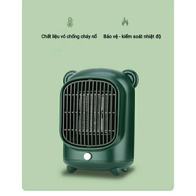☘️Hệ thống Sưởi Gốm cực kỳ hiện đại - Không khô da - Thiết kế xinh xắn, nhỏ gọn, dễ di chuyển mọi nơi phù hợp dùng cho dân văn phòng, học sinh, sinh viên,...- Chất liệu nhựa ABS + PA dày dặn, bền đẹp☘️💥Quạt sưởi mini để bàn 500W - Quạt sưởi mini công suất lớn - Hệ thống sưởi nhanh trong 3s mang đến sự ấm áp nhanh chóng. Thiết kế đẹp mắt. Phù hợp để mọi vị trí: sàn nhà, bàn, ghế,....