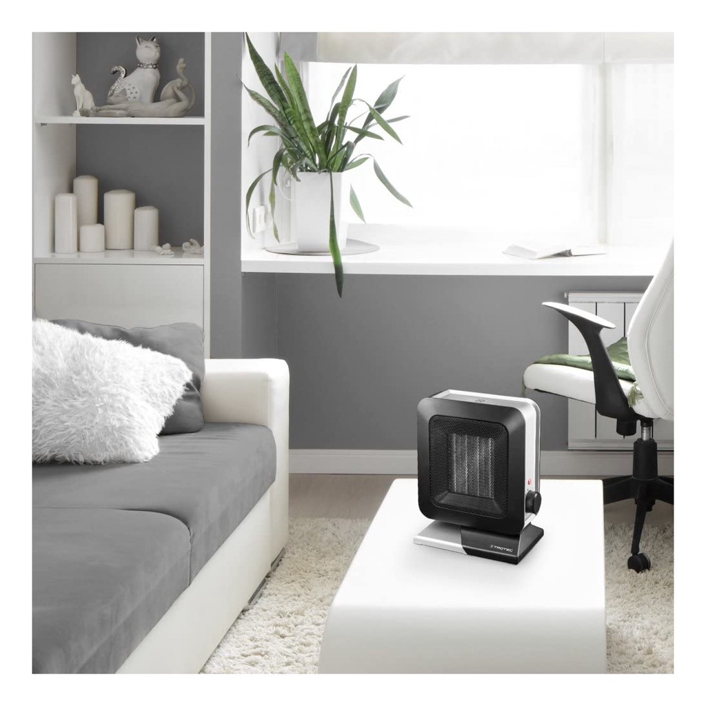 - Quạt sưởi gốm Trotec có một công tắc với hai cấp độ sưởi (700 W / 1.400 W) và một giai đoạn lạnh (hoạt động của quạt). Vào những ngày ấm áp hơn, quạt có thể được sử dụng như một chiếc quạt bàn nhỏ gọn với giai đoạn lạnh. Thiết bị vẫn cực kỳ tiết kiệm, vì không cần điện để tạo nhiệt trong giai đoạn lạnh.