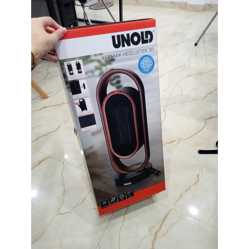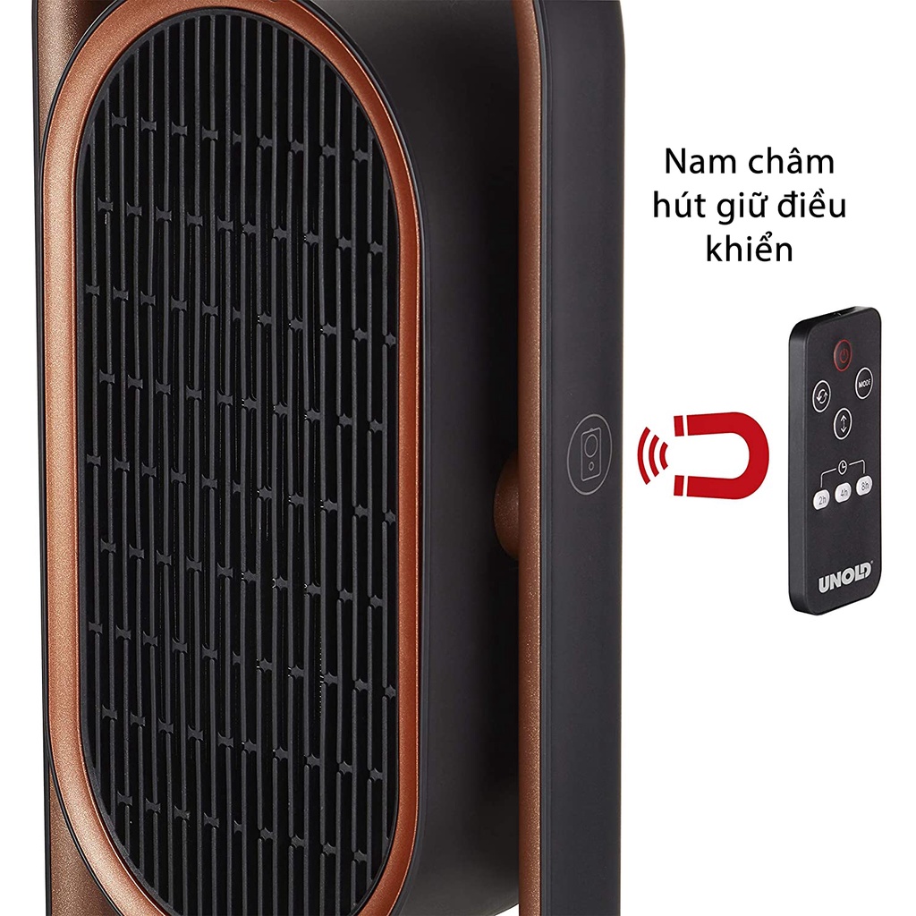 - Quạt sưởi gốm 3D Keramik Unold có điều khiển từ xa có từ tính. Màu đồng/đen thanh lịch, dễ chịu cho căn phòng nhà bạn