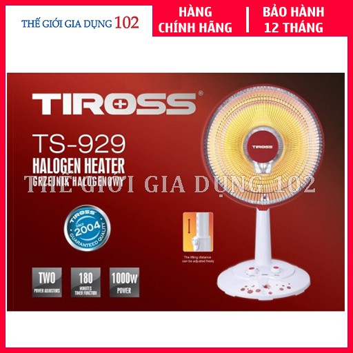 Thiết Bị Điện Gia Dụng > Thiết bị điện gia dụng lớn > Máy sưởi || Quạt sưởi Halogen TIROSS TS929 1000W - Hàng chính hãng, bảo hành 12 thángCòn hàng