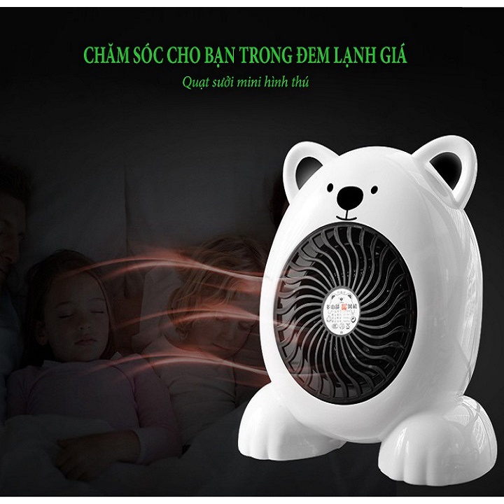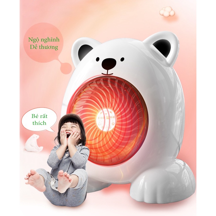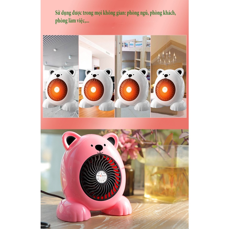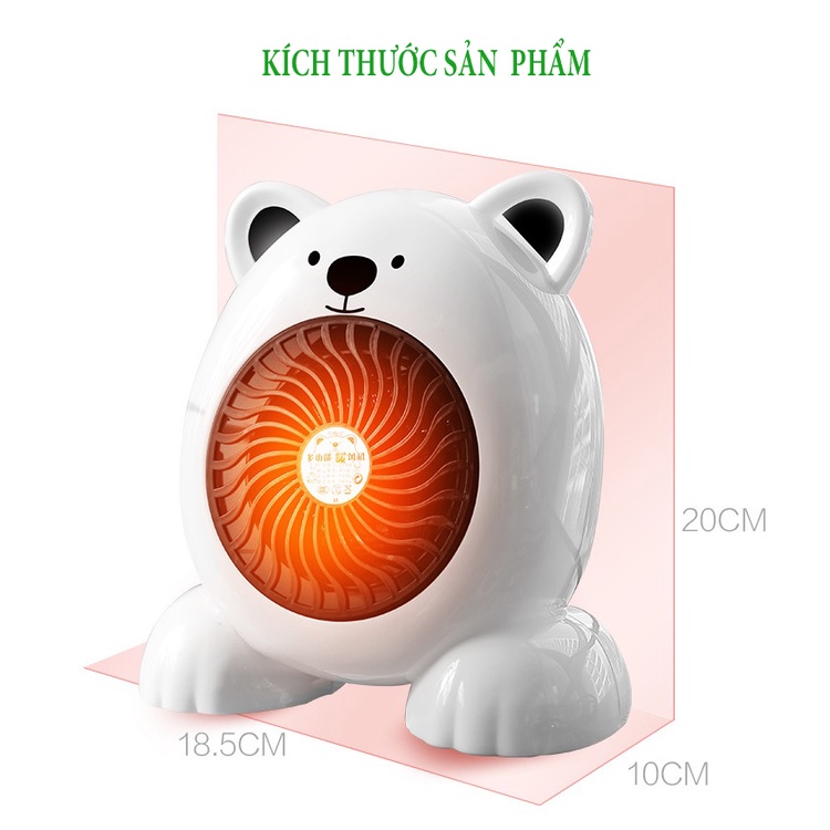 Quạt sưởi mini 2 chiều hình gấu siêu đáng yêu, Máy sưởi mini công suất 350W làm ấm cực nhanh, an toàn dễ sử dụng