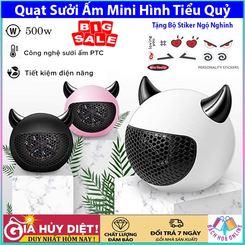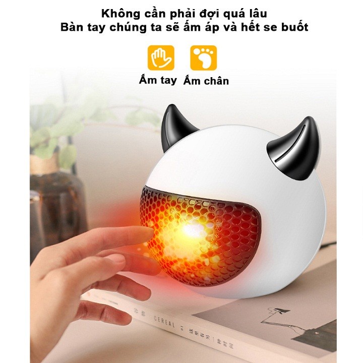 Quạt sưởi mini để bàn 500W - Máy sưởi ấm 2 chiều hình tiểu quỷ đáng yêu, nhỏ ngọn, tiết kiệm điện năng