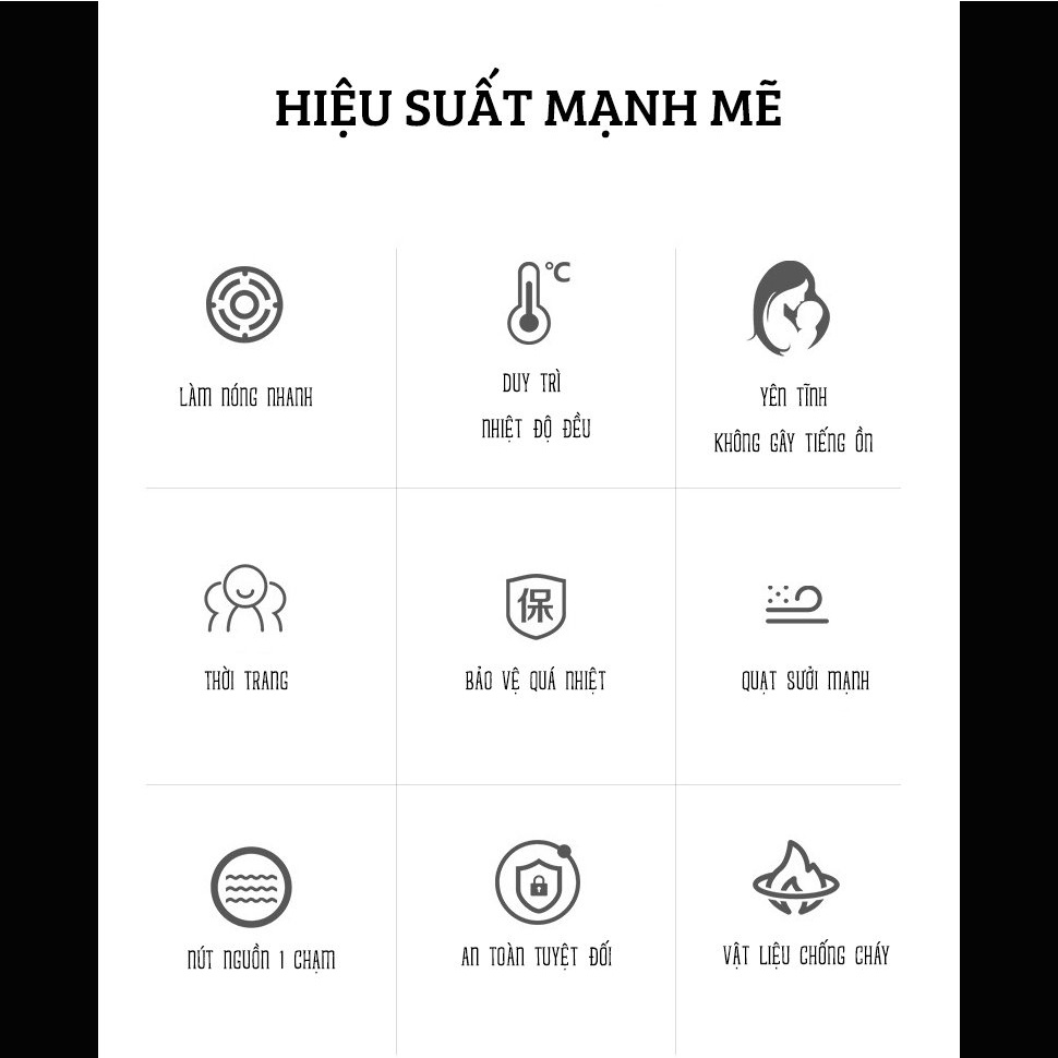 - Ngoài ra, còn làm ấm nhanh tiết kiệm điện giúp cho không khí ấm lên nhanh chóng.