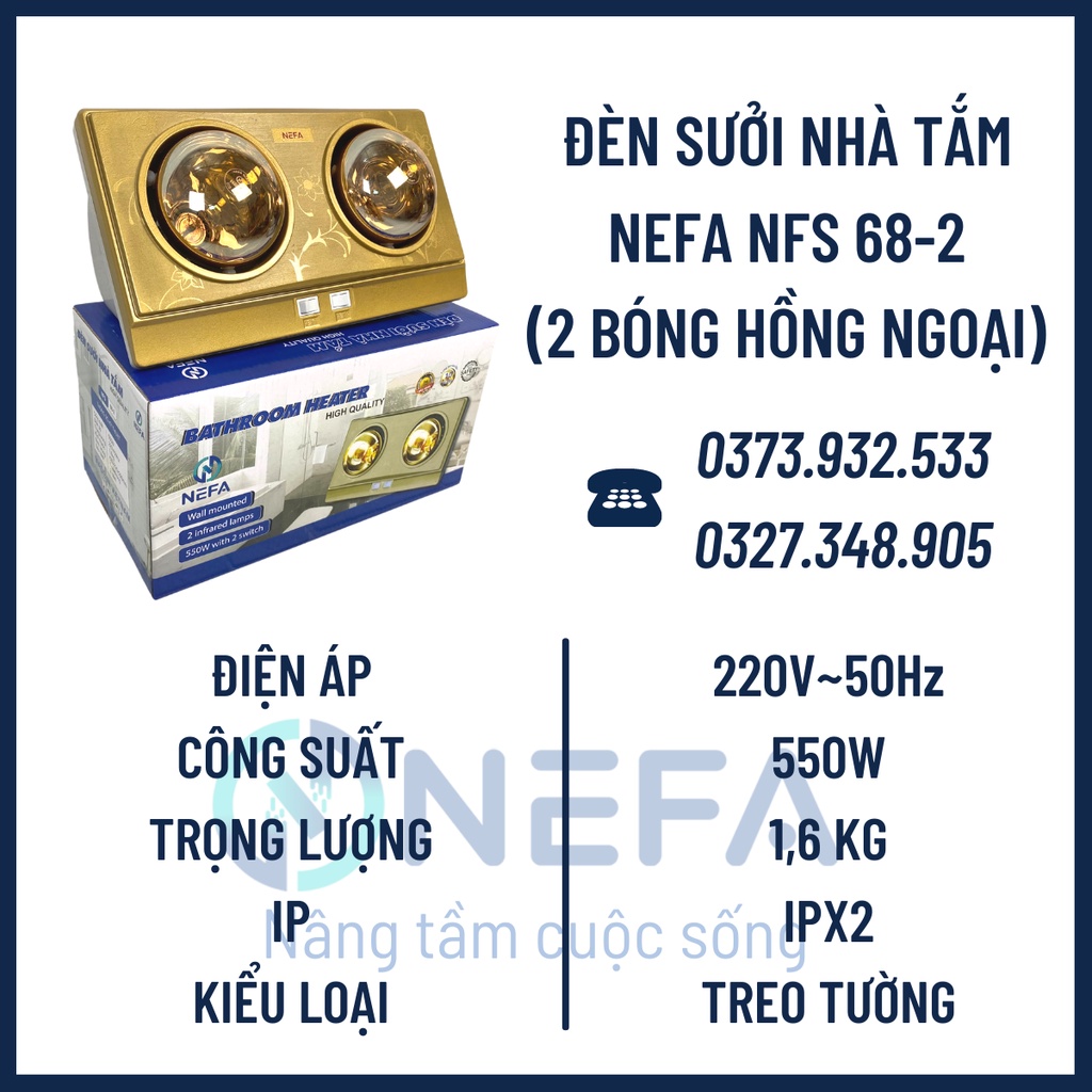 - Đèn sưởi nhà tắm : BÓNG có thiết kế sang trọng: mặt trước, với thiết kế hoa văn, màu sắc tinh tế tạo cho đèn sưởi nhà tắm NEFA một diện mạo mới hoàn toàn phù hợp với không gian phòng tắm sang trọng và đạt chuẩn phong cách Châu Âu.