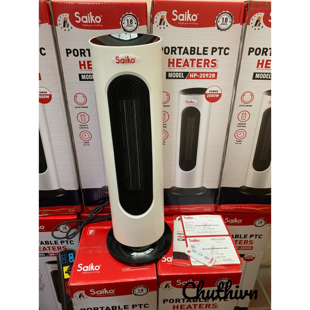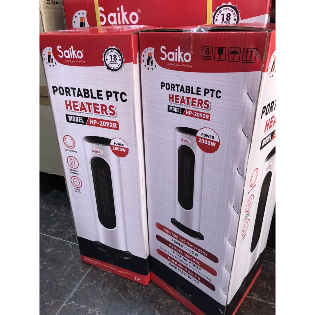 Quạt sưởi nhiệt Saiko HP-2092R - Có điều khiển từ xa, Bảo hành 18 tháng trên toàn quốc