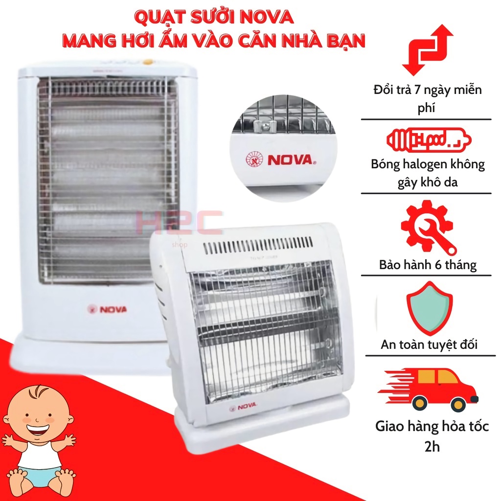 Quạt sưởi NOVA,nóng siêu nhanh, bóng sưởi Halogen không gây khô da, có lưới bảo vệ tuyệt đối an toàn cho trẻ em