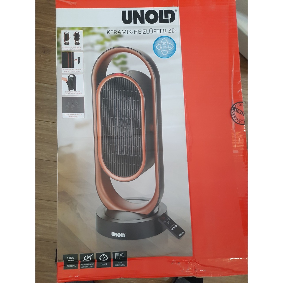- Quạt sưởi 2 chiều Unold 86535 có điều khiển từ xa có từ tính. Mầu sắc đồng đen sang trọng, trang nhã tô điểm cho căn phòng nhà bạn!
