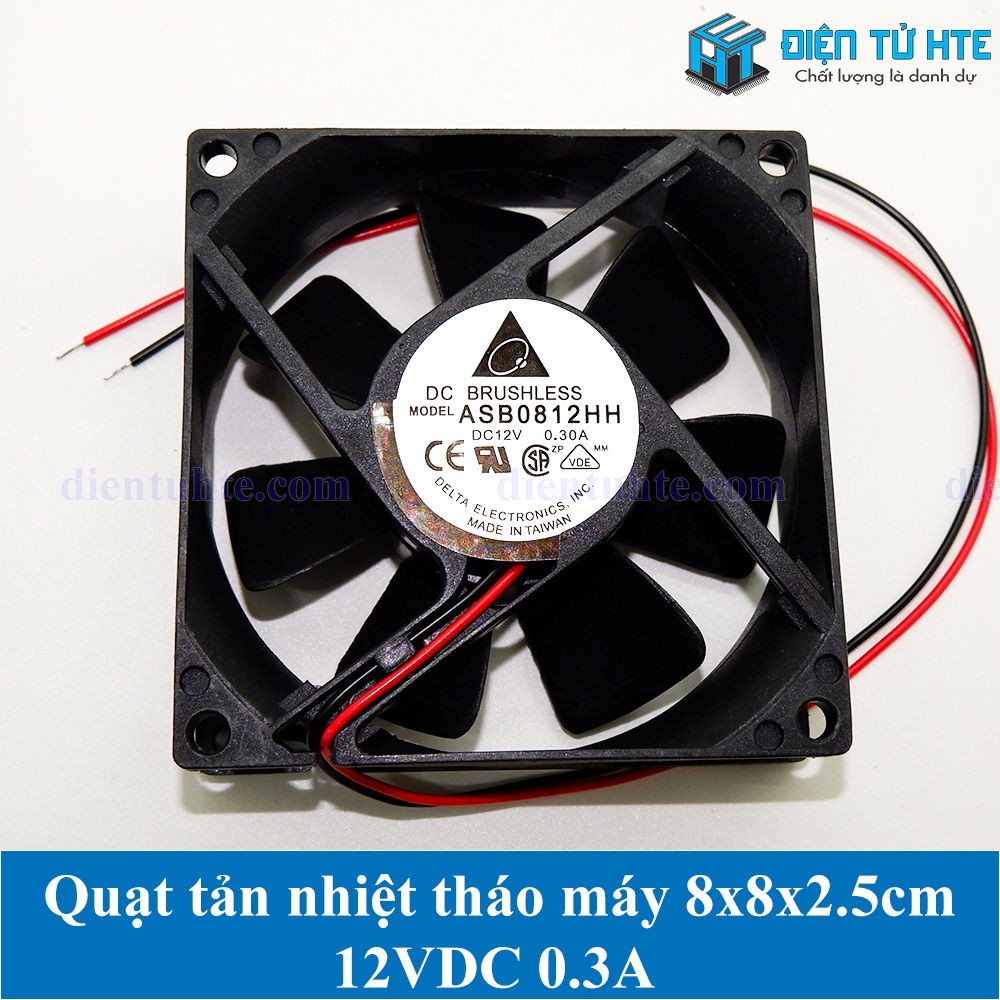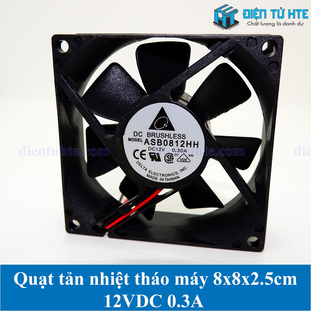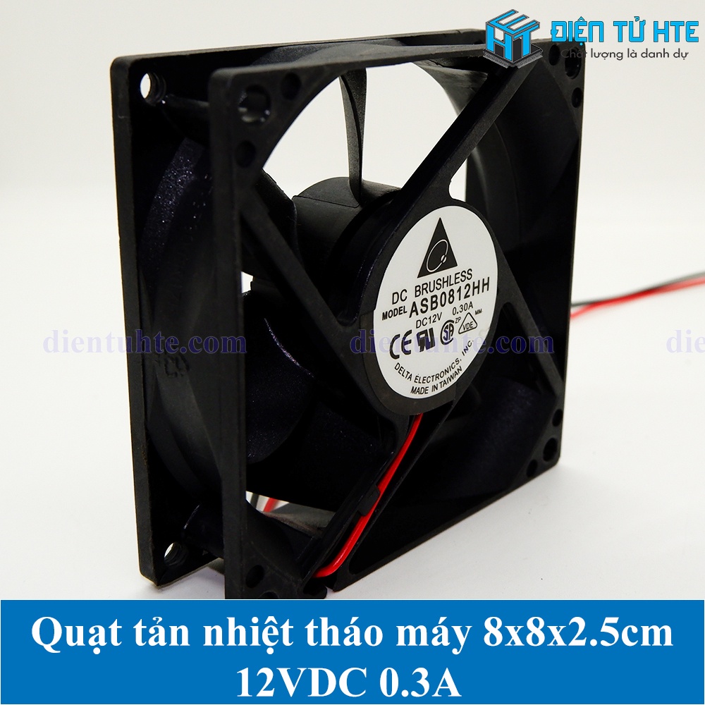 Quạt tản nhiệt 12V 0.3A 8x8x2.5cm DeltaQuạt gió êm, sử dụng tản nhiệt vận hành êm ái, bền bỉ