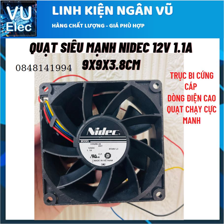 Quạt Tản nhiệt 12V 1.1A- QUạt hút gió siêu mạnh Hãng NIDEC 12V 9x9x3.8CM
