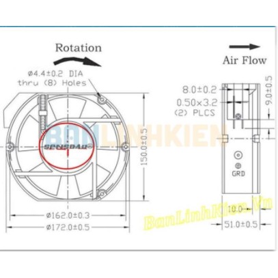 - Quạt dùng tạo gió làm mát cho tủ điện, các thiết bị điện tử...- Điện áp 220V-240VAC 50/60Hz
