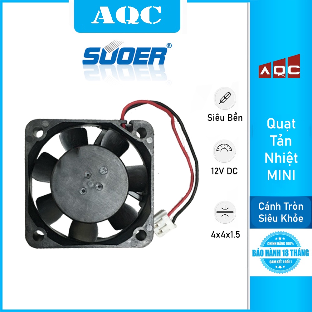 Quạt tản nhiệt 4x4x1.5 loại 2 dây 12V nhựa PVC bền đẹp chống cháy chập