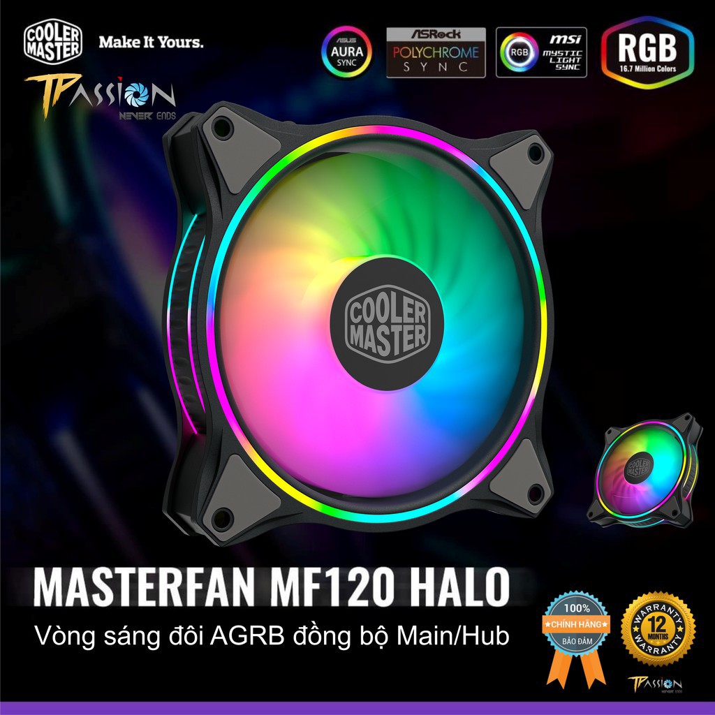 Máy tính & Laptop > Linh Kiện Máy Tính > Quạt và Tản Nhiệt || Quạt tản nhiệt case máy tính Cooler Master MASTERFAN MF120 HALO ARGB - MFL-B2DN-18NPA-R1 I Fan Case CoolerMaster Halo 12Còn hàng