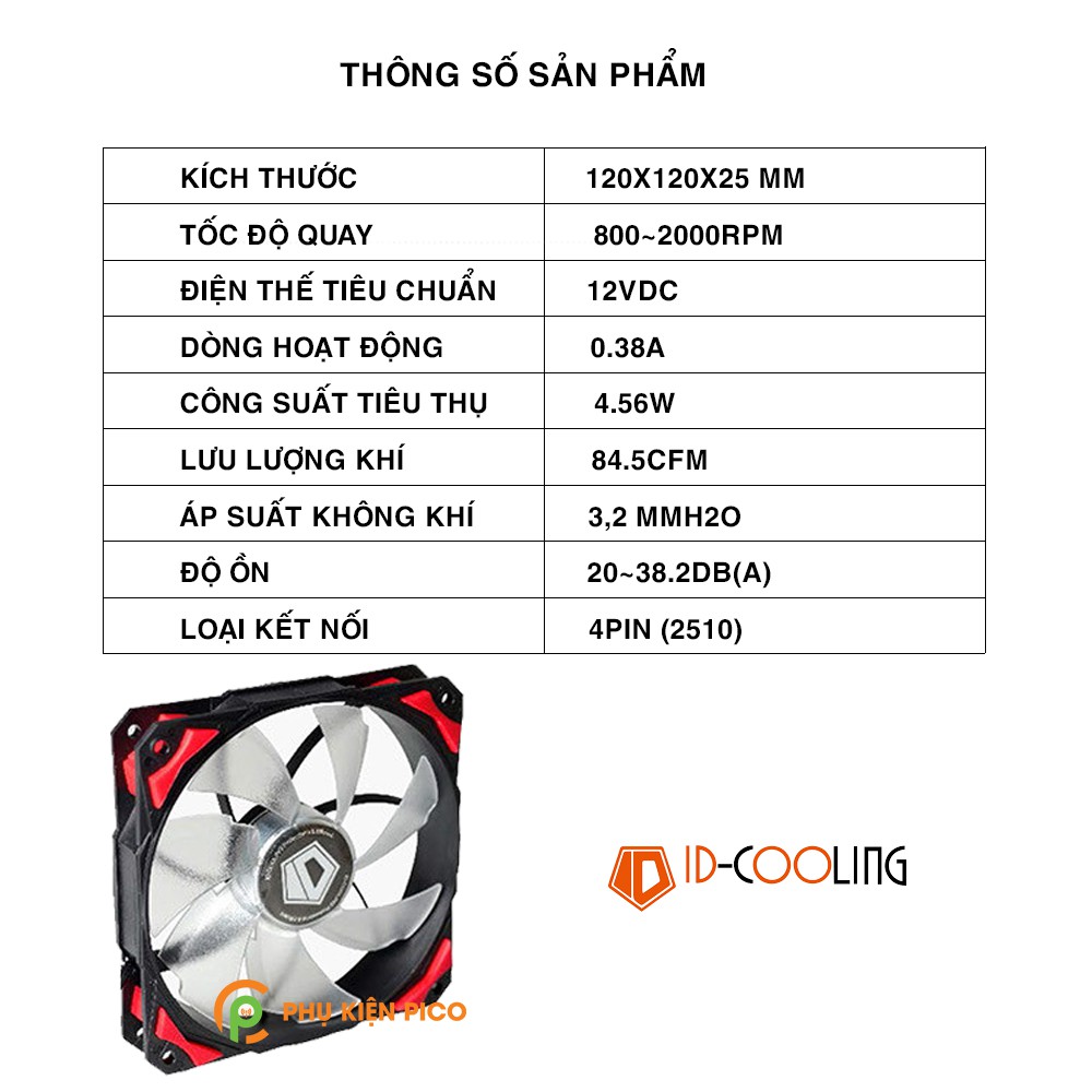 - ID-Cooling PL-12025 là quạt kích cỡ 12cm với led dịu mắt, sức gió thông thoáng.