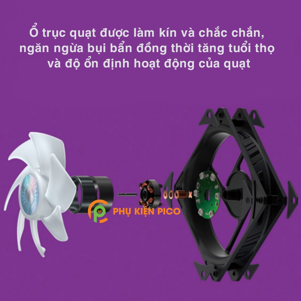 • Quạt Fan Case 12cm đồng bộ RGB với mainboard Asus Aura, ASRock RGB, Gigabyte Fusion hay MSI RGB thông qua chân cắm 12V ARGB 4-pin.