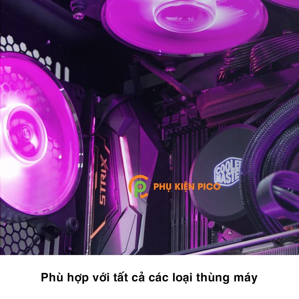 • Quạt Fan Case 12cm đồng bộ RGB với mainboard Asus Aura, ASRock RGB, Gigabyte Fusion hay MSI RGB thông qua chân cắm 12V RGB 4-pin.