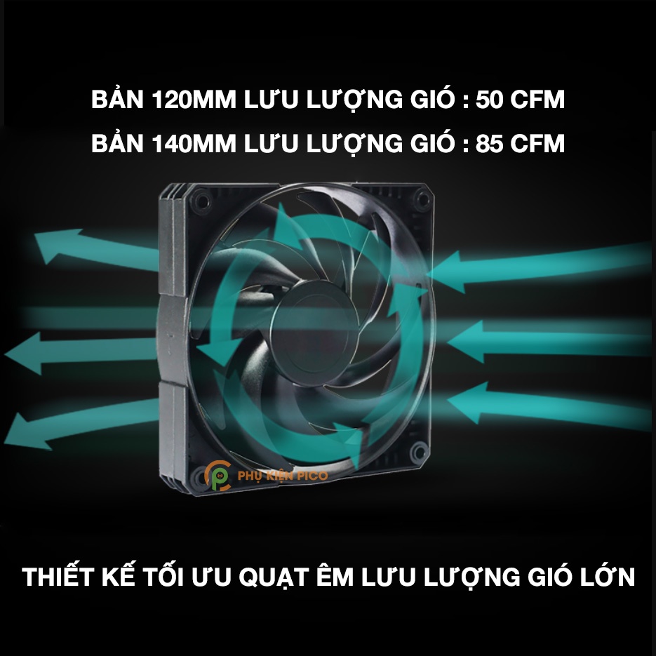 - Quạt 9 cánh với vòng quay 1500 với sức gió 85 CFM, hỗ trợ điều tốc PWM.