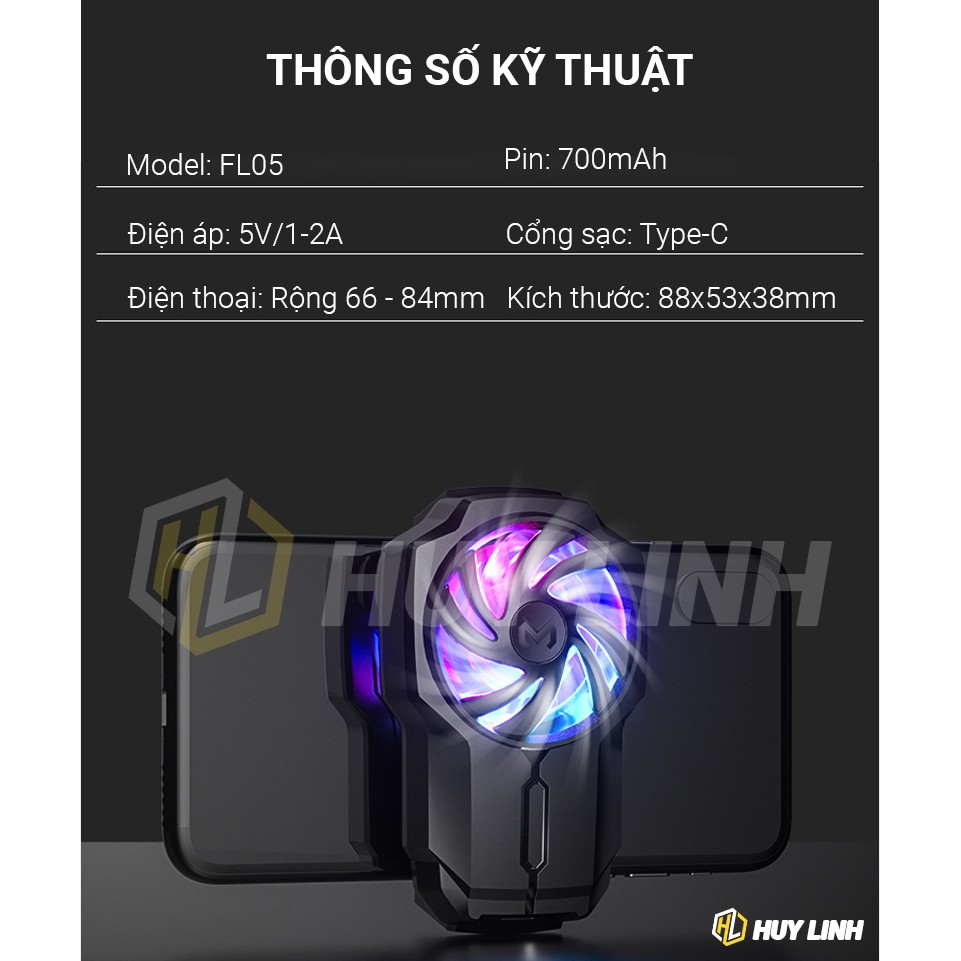 Điện Thoại & Phụ Kiện > Phụ kiện > Quạt USB & Quạt điện thoại || Quạt tản nhiệt cho điện thoai Memo FL05 LED RGB - Pin 700mAh tặng kèm găng tay cảm ứngCòn hàng