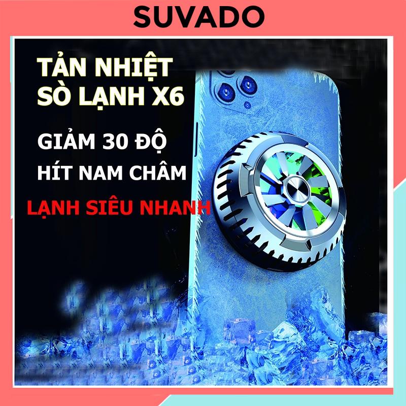 Quạt tản nhiệt cho điện thoại gaming nam châm X6 cho điện thoại máy tính bảng tản nhiệt nước sò lạnh siêu mát SUVADO