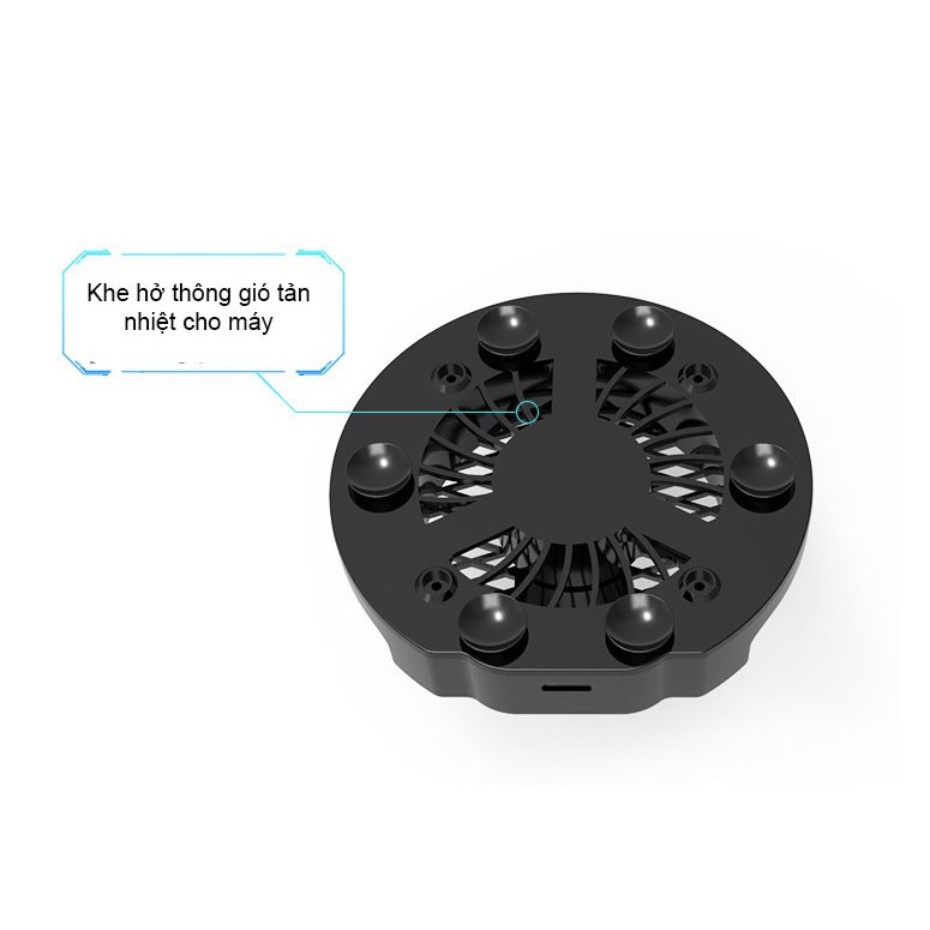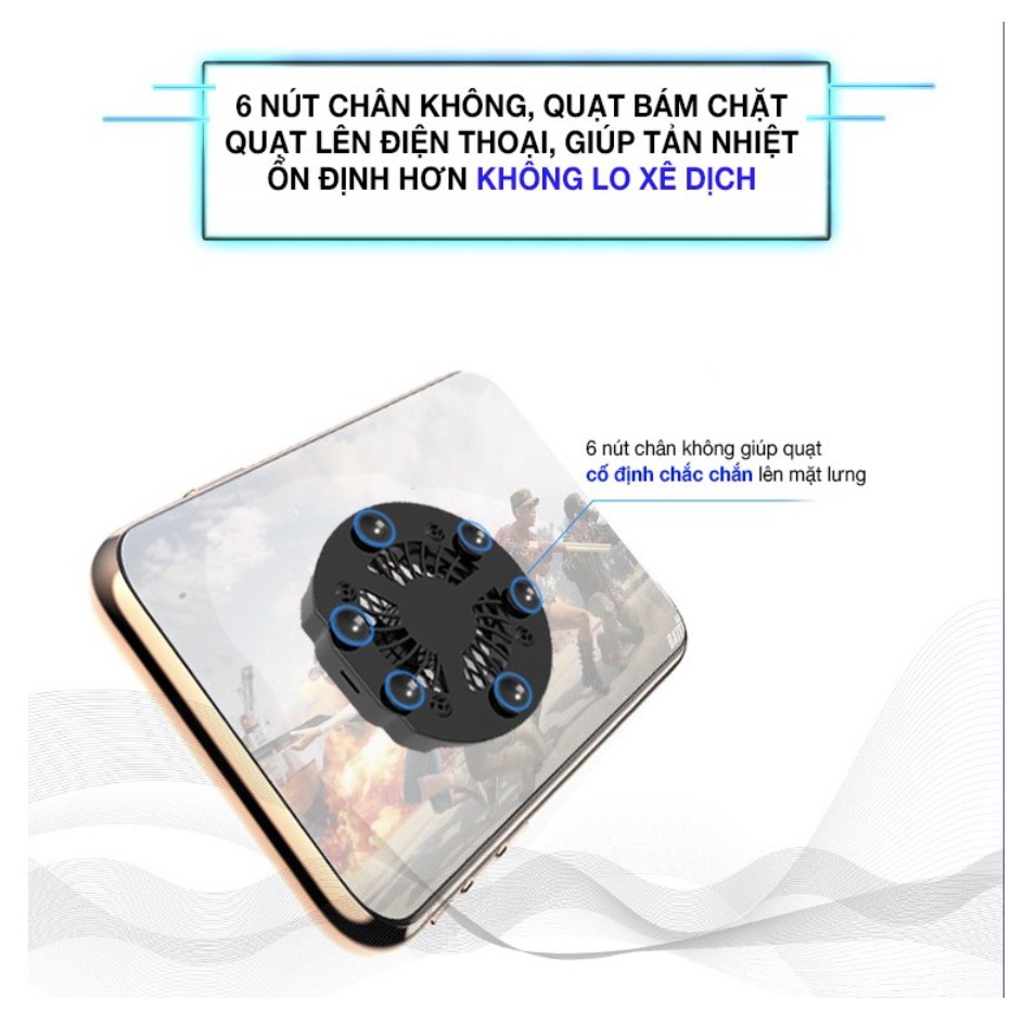 - 6 nút chân không trước quạt giúp cố định quạt chắc chắn lên bề mặt lưng điện thoại
