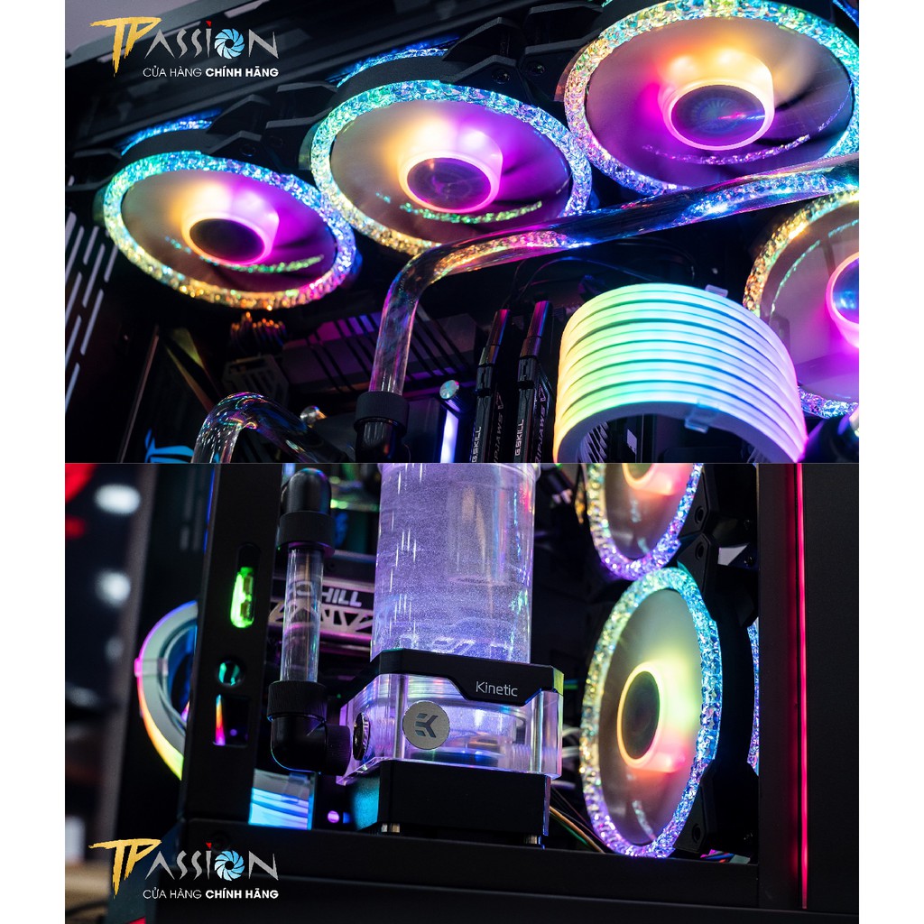 ✅ Vòng LED tam sắc ARGB: được trang bị 24 bóng LED ARGB được bố trí đồng nhất xung quanh vòng pha lê với 6 bóng LED phụ trên hub quạt.