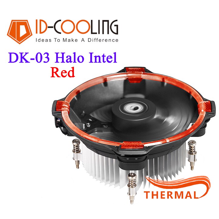 Quạt tản nhiệt cpu ID-Cooling DK-03 Halo Intel Red - Led đẹp, hiệu năng mạnh mẽDK-03 là dòng sản phẩm cao cấp được hãng ID-Cooling sản xuất dành riêng cho những người dùng yêu thích đèn LED bên cạnh khả năng giảm nhiệt mạnh mẽ, và đặc biệt dành cho những bạn có thùng máy nhỏ.