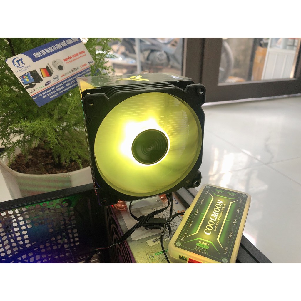 - Quạt đi kèm 9mm tốc độ cao, trang bị đèn RGB, đồng bộ mainboard, không đi kèm controller