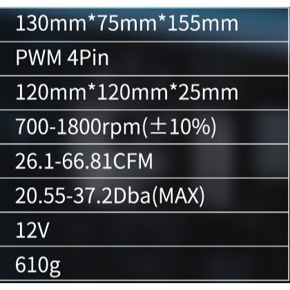 Kích thước bộ tản nhiệt: 155mm x 75mm x 130mm