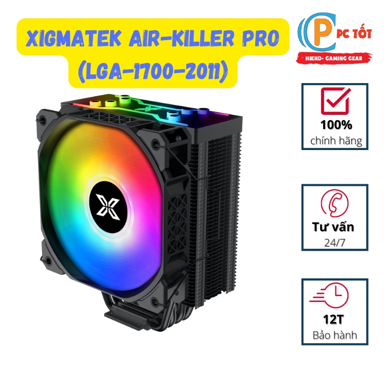 Máy tính & Laptop > Linh Kiện Máy Tính > Quạt và Tản Nhiệt || Quạt tản nhiệt CPU XIGMATEK AIR-KILLER PRO (EN47895) – TDP 160W, ARGB ( Hỗ trợ Socket 1700, 2011,AMD))Còn hàng
