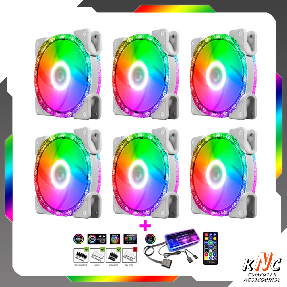 Quạt Tản Nhiệt Diamond U1 Trắng 12cm Fan Led RGB Bộ 6 Quạt Đồng Bộ Hub Coolmoon ARGB Music
