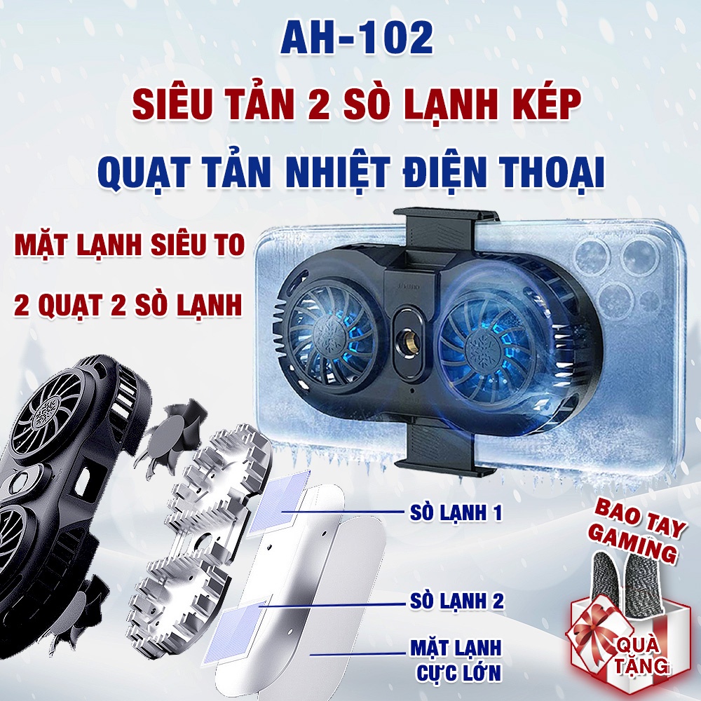 Quạt tản nhiệt điện thoại 2 sò lạnh AH 102 - Quạt tản nhiệt sò lạnh cỡ lớn AH-102 Livestream - Tiktok - Gaming