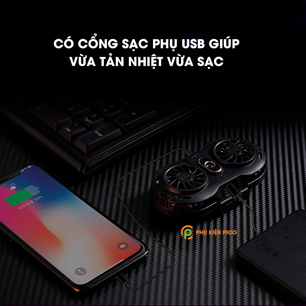 - Tản nhiệt điện thoại sò lạnh diện tích làm lạnh lớn (43cm2) làm lạnh nhanh hơn cùng 2 quạt công suất lớn.