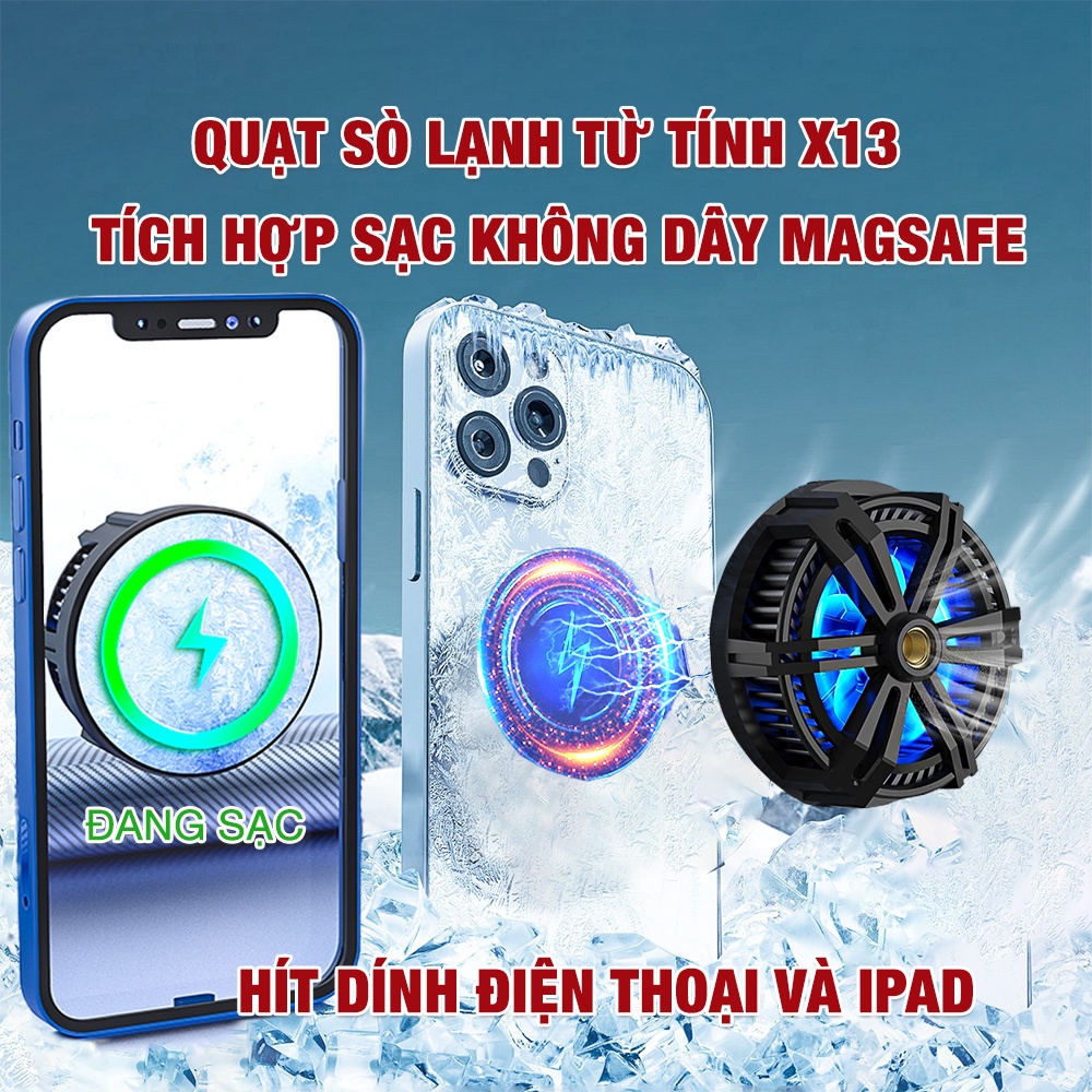 Quạt tản nhiệt điện thoại máy tính bảng sò lạnh X12 hút nam châm led RGB - Quạt tản nhiệt Ipad X6/X8/X12/X13