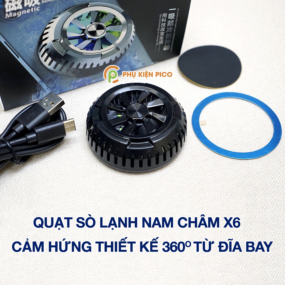 - Quạt tản nhiệt gaming nam châm cho điện thoại máy tính bảng X6 tản nhiệt sò lạnh siêu mát được trang bị với cáp sạc Type C USB dài 1.5m.