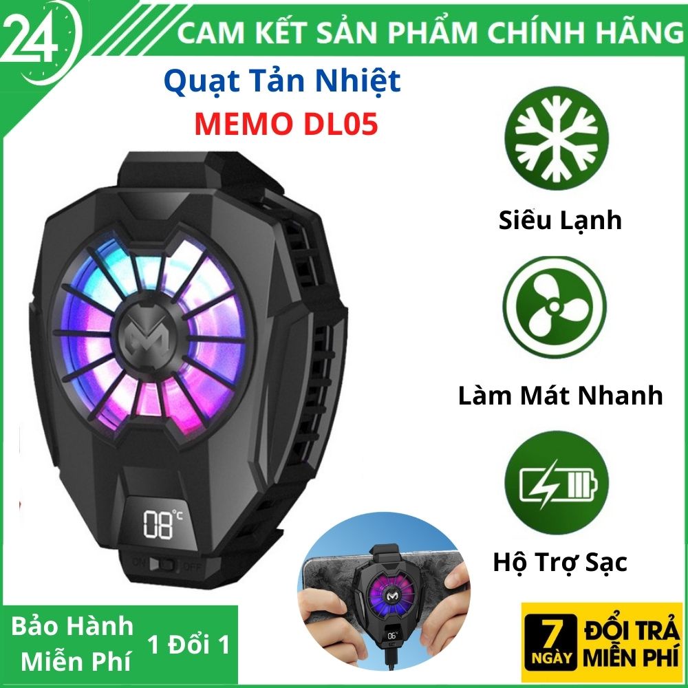 Máy tính & Laptop > Linh Kiện Máy Tính > Quạt và Tản Nhiệt || Quạt tản nhiệt điện thoại MEMO DL05 lạnh siêu nhanh, hiển thị nhiệt độ, LED RGB, Kẹp thu vào 2 chiều làm mátCòn hàng