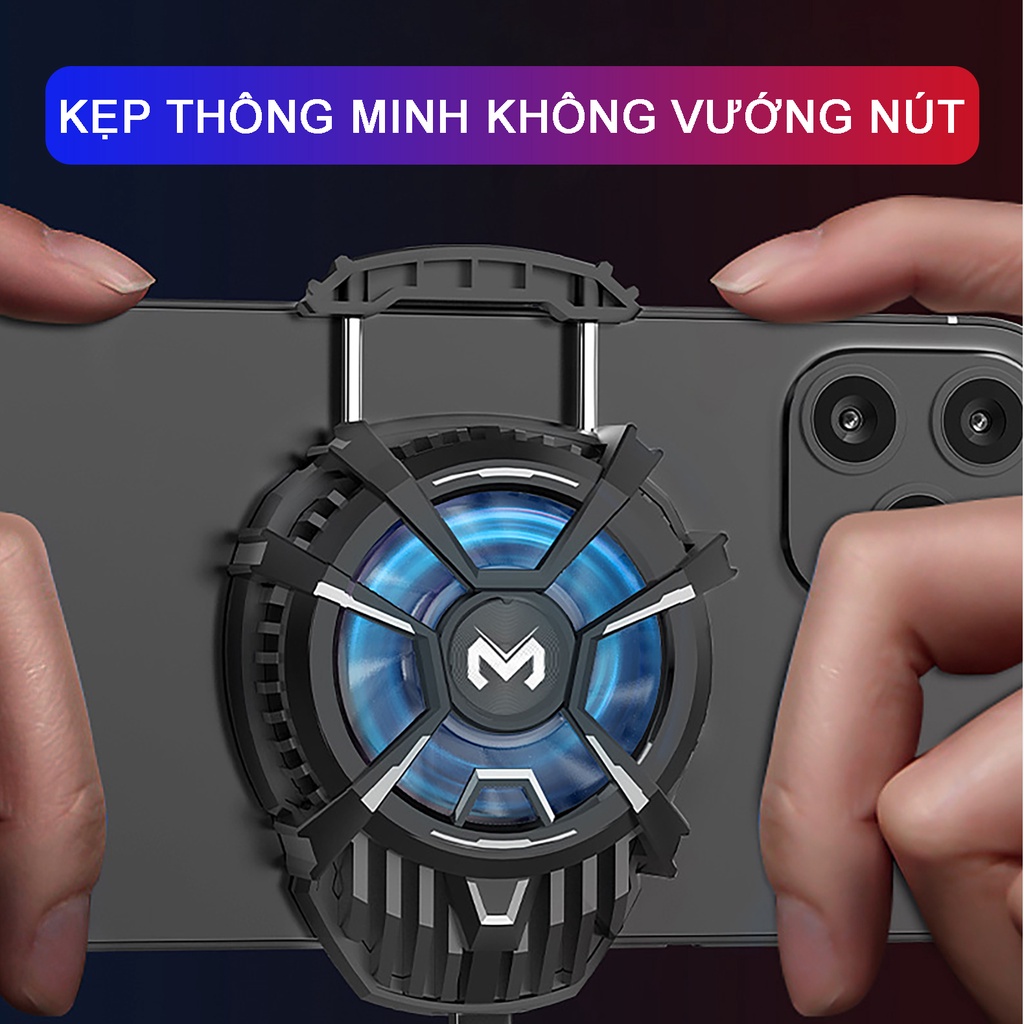Quạt tản nhiệt điện thoại gaming MEMO là sở hữu thiết kế độc đáo với hệ thống 3 cánh quạt tạo lực gió có thể giúp làm mát và “hạ nhiệt” điện thoại nhanh chóng. Bên cạnh đó, một số model còn nổi bật với hệ thống đèn LED RGB đầy màu sắc, mang đến trải nghiệm công nghệ vô cùng thú vị cho mọi “game thủ”.