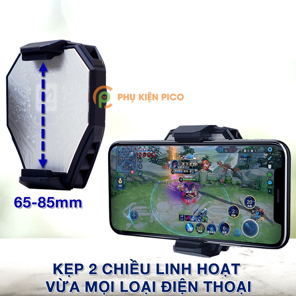 - Tản nhiệt điện thoại MEMO DL-03 giúp chống tụt FPS khi chơi game và thực hiện các tác vụ nặng như edit video trên điện thoại nhanh hơn 50% nhờ làm lạnh CPU giúp điện thoại hoạt động hết công suất mà không bị nóng.