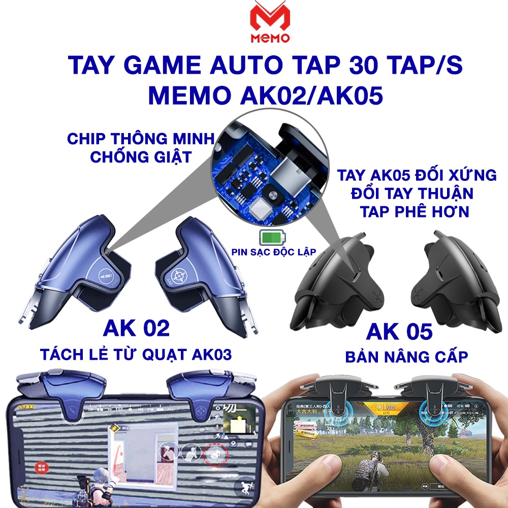 - Memo AK03 và AK02 và AK05 chế độ tap được chia thành 4 mức độ: mức 1 tap đơn, mức 2-3-4 tương ứng chế độ auto tap 8-16-30 lần/giây.