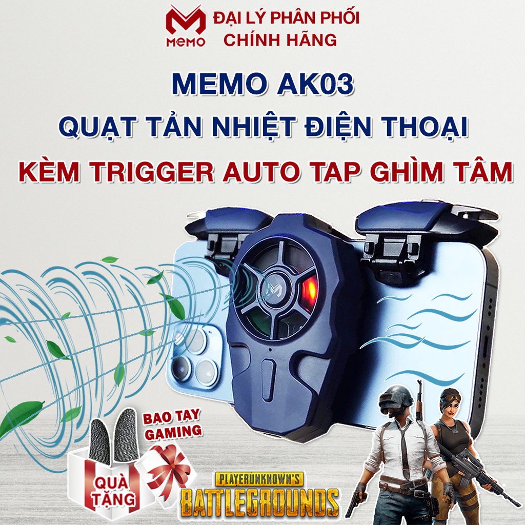 Quạt tản nhiệt điện thoại Memo AK03 là combo của giữa quạt tản nhiệt siêu tốc và nút bắn PUBG Memo AK02 huyền thoại giúp bạn chiến thắng trong mọi game.1. Ưu điểm vượt trội của sản phẩm: