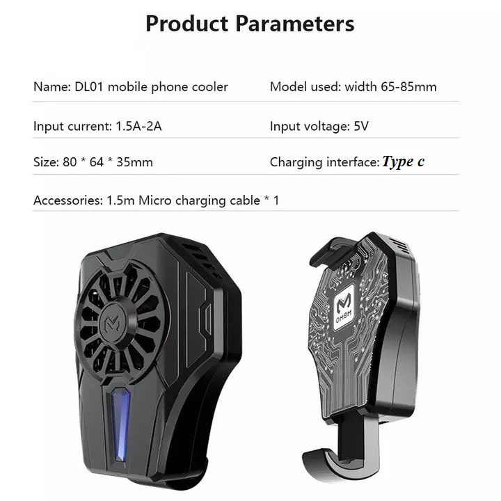 ✔️Quạt DL01 tản nhiệt sò lạnh và được trang bị với cáp sạc Type C USB dài 1.5m