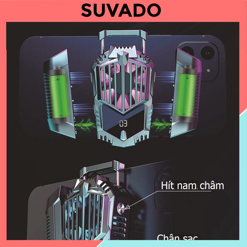 Giới thiệu [Mã ELHA22 giảm 6% đơn 300K] Quạt tản nhiệt điện thoại gaming 2 PIN SẠC sò lạnh cho điện thoại 5v X3A siêu mát SUVADO