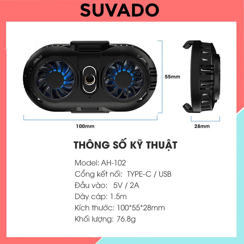 Quạt tản nhiệt điện thoại Gaming sò lạnh memo 2 quạt giá rẻ Livestream quay TIKTOK AH102 SUVADO
